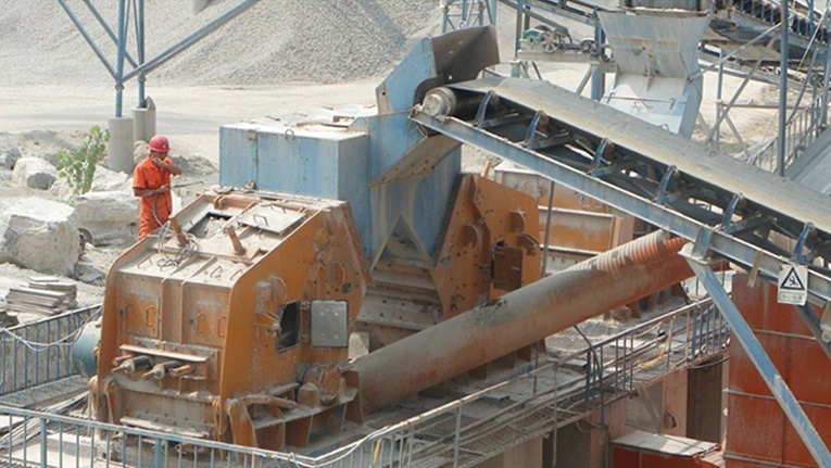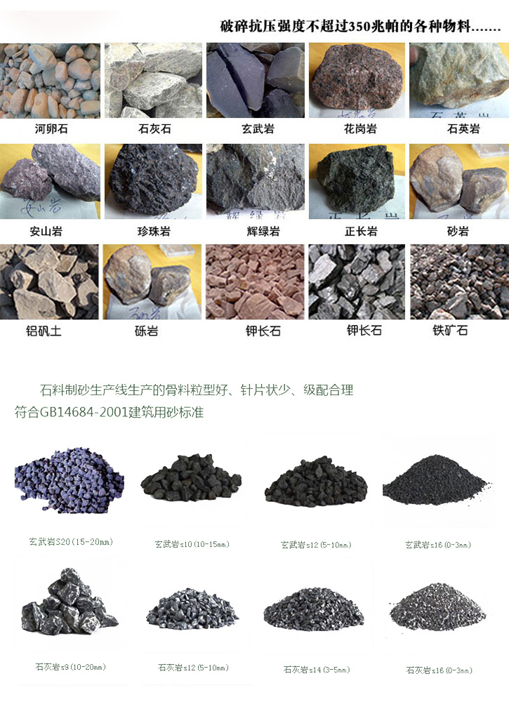 石料生產(chǎn)線的生產(chǎn)流程大致為:(料倉)->振動(dòng)給料機(jī)->顎式破碎機(jī)->反擊式破碎機(jī)->振動(dòng)篩->(成品石料),各設(shè)備中間以溜槽或皮帶輸送機(jī)相連。